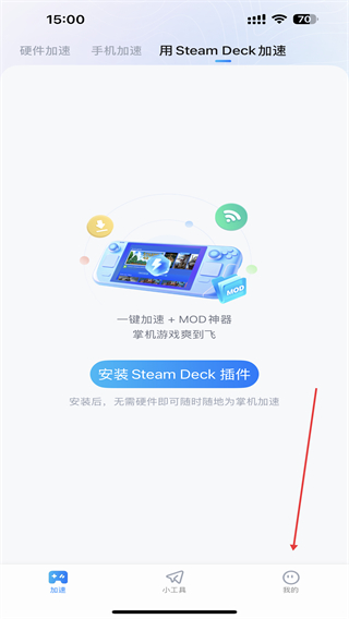 1、打開奇游聯(lián)機寶app,點擊底部導(dǎo)航欄中的我的選項。