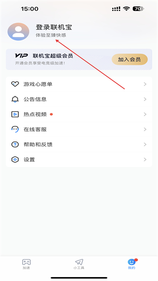 2、進入我的頁面內(nèi),點擊上方登錄聯(lián)機寶的按鈕。