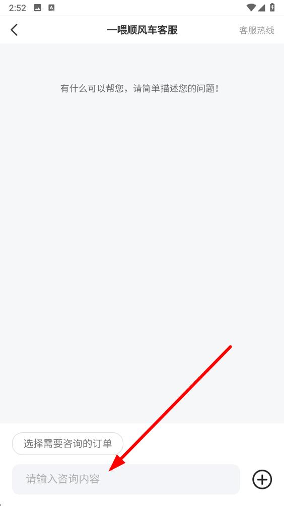 4、進(jìn)入一喂順風(fēng)車客服聊天界面后,在輸入框中輸入想要咨詢的問題內(nèi)容,即可與客服進(jìn)行溝通。