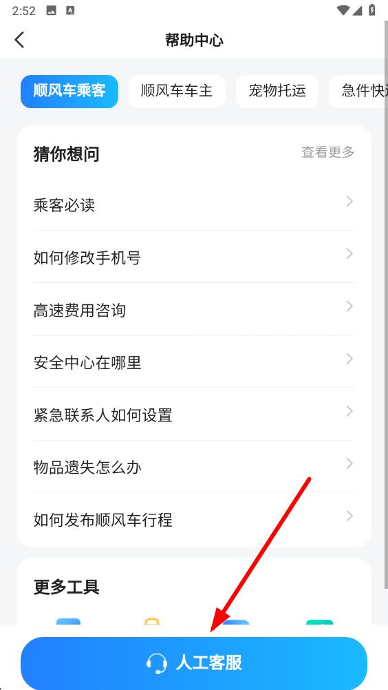 3、在幫助中心頁面,點(diǎn)擊頁面下方的人工客服按鈕,進(jìn)入人工客服聊天頁面。