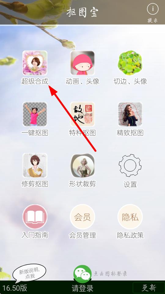 1、打開摳圖寶,點擊超級合成進入功能頁面。