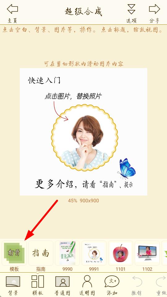 2、在超級合成頁,可點擊圖片替換照片,也能看指南了解更多。