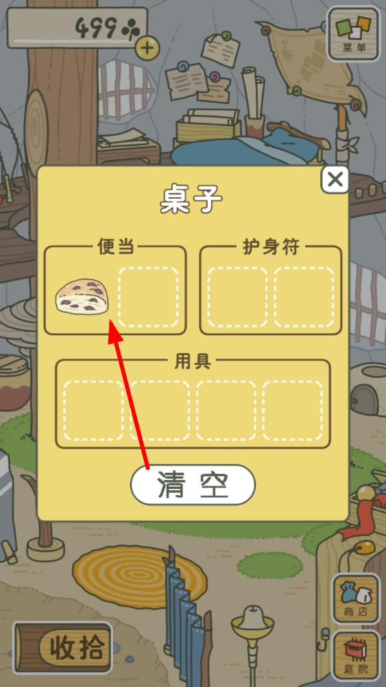 3、在界面中除了準(zhǔn)備便當(dāng)還可以點(diǎn)擊護(hù)身符區(qū)域,可放入獲取到的護(hù)身符道具,它能為青蛙的旅行帶來(lái)好運(yùn)和特別效果。
