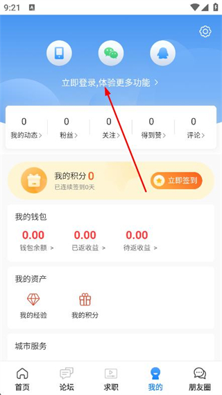 2、在我的頁面中,點擊上方的區(qū)域,進入登錄頁面。