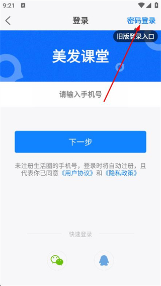 3、在登錄頁面中,找到并點擊右上角密碼登錄選項。