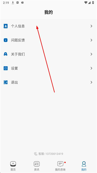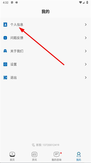 2、在個人中心界面,點擊個人信息選項,進入個人信息頁面。