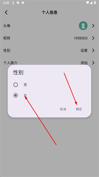 3、在個人信息頁面點擊性別選項,彈出性別選擇窗口。