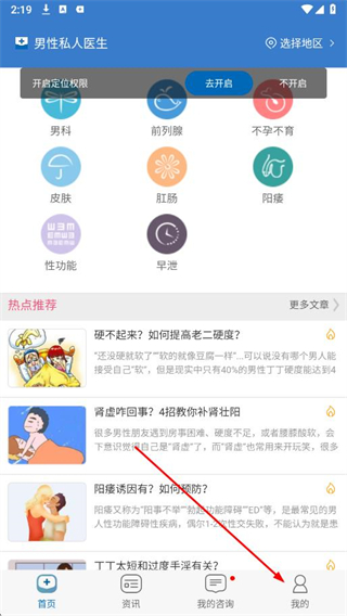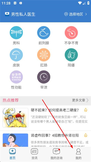 1、打開男性私人醫(yī)生APP,點擊底部我的,進入個人頁面。