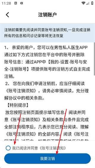 5、在注銷賬戶頁面勾選須知,點擊我要注銷即可。
