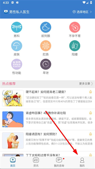 1、打開男性私人醫(yī)生APP,點擊導航欄中的我的。