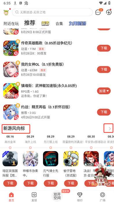 2、當(dāng)玩家滑動到【新游風(fēng)向標(biāo)】欄目時,可以點擊該欄目右側(cè)的箭頭小按鈕來進行詳細(xì)了解;