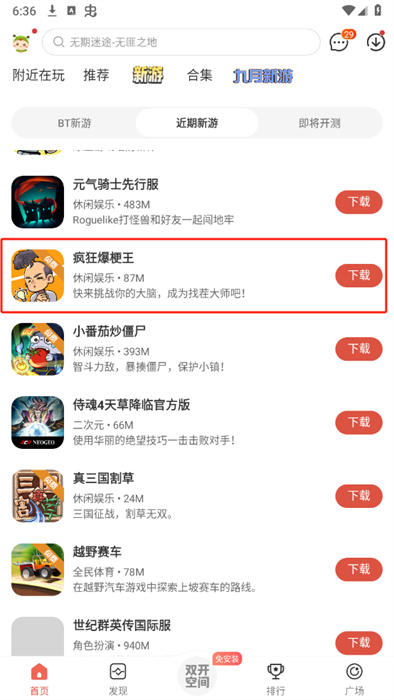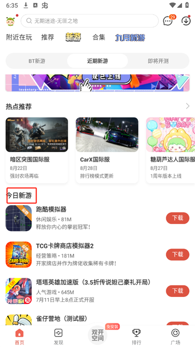 3、進入到新游欄目之后,玩家可以向下滑動來看看有沒有自己想要玩的新游戲;