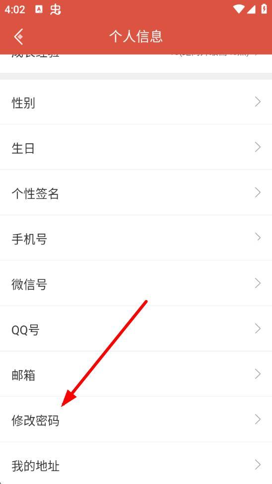 2、在個人信息頁面,向下滑動找到修改密碼選項,點擊進入修改密碼界面。