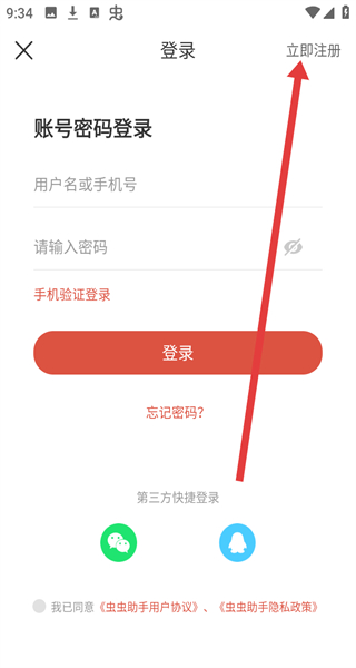 2、可以在登錄方式中,選擇點擊使用蟲蟲賬號密碼的方式進行登錄。