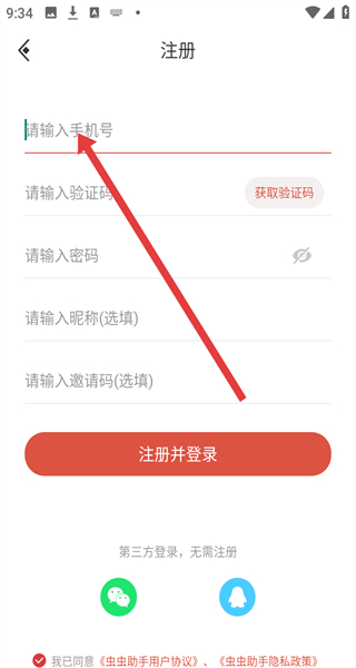 4、將收到的驗證碼填入下方輸入框,最后點擊登錄按鈕,完成蟲蟲助手的登錄操作。