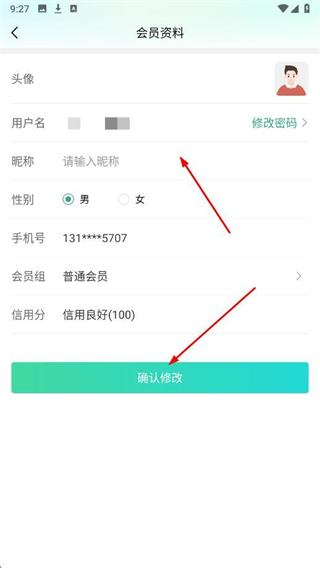 3、在會員資料頁面,輸入新的昵稱,點擊確認(rèn)修改,完成用戶名更改。