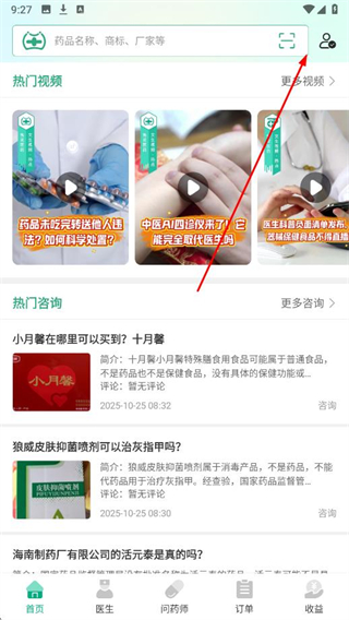 1、打開兔靈醫(yī)藥APP,點擊首頁右上角的個人中心圖標(biāo)。