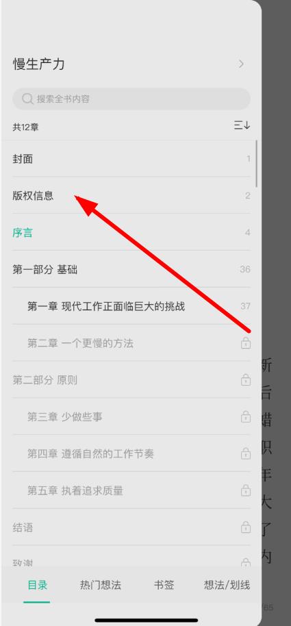 3、彈出目錄頁面后,可看到書籍各章節(jié)內(nèi)容,點擊對應(yīng)章節(jié)即可跳轉(zhuǎn)閱讀。