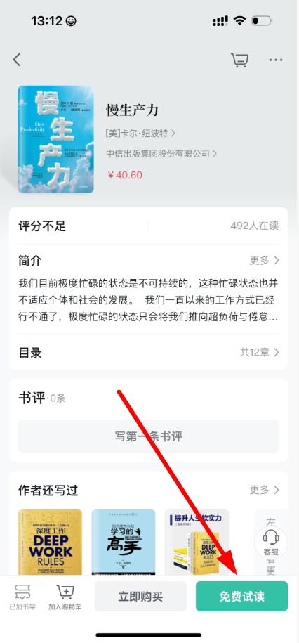 1、在書籍詳情頁,點擊免費試讀按鈕進入閱讀界面。