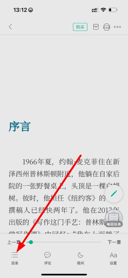 2、進入閱讀界面后,點擊屏幕下方的目錄圖標。