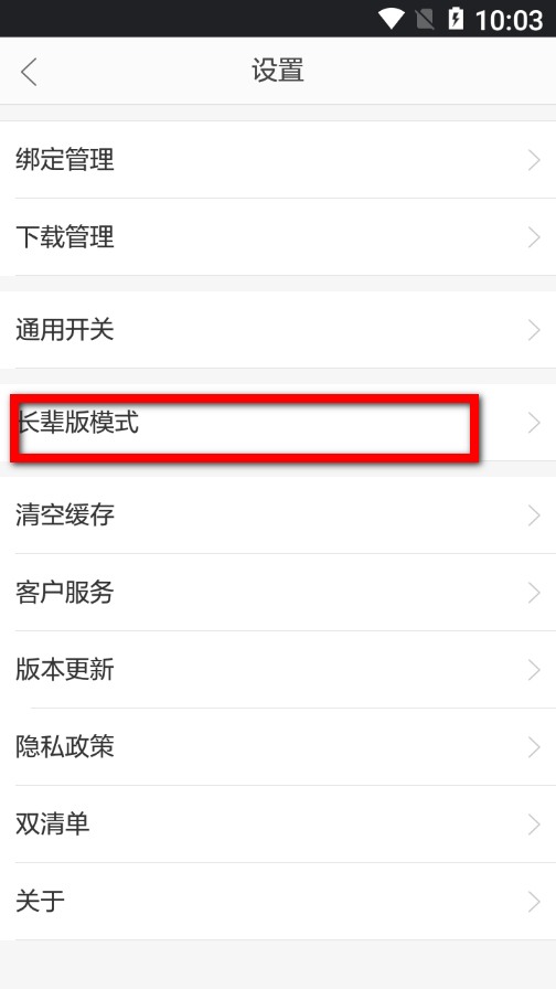3、在設(shè)置頁面,點擊長輩版模式選項,進入長輩版模式說明頁面。