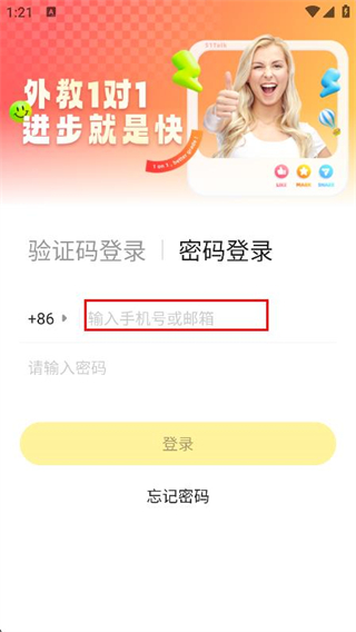 2、在密碼登錄頁面,在輸入框內(nèi)輸入手機號或郵箱。