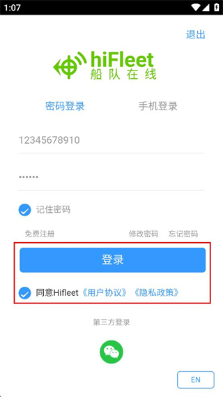4、勾選同意相關協(xié)議選項,確認信息無誤后,找到“登錄”按鈕并點擊完成賬號登錄操作。