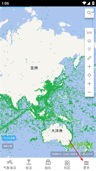 1、進入hiFleet船隊在線主界面,找到底部導航欄的“更多”選項,點擊該選項進入功能列表頁面。