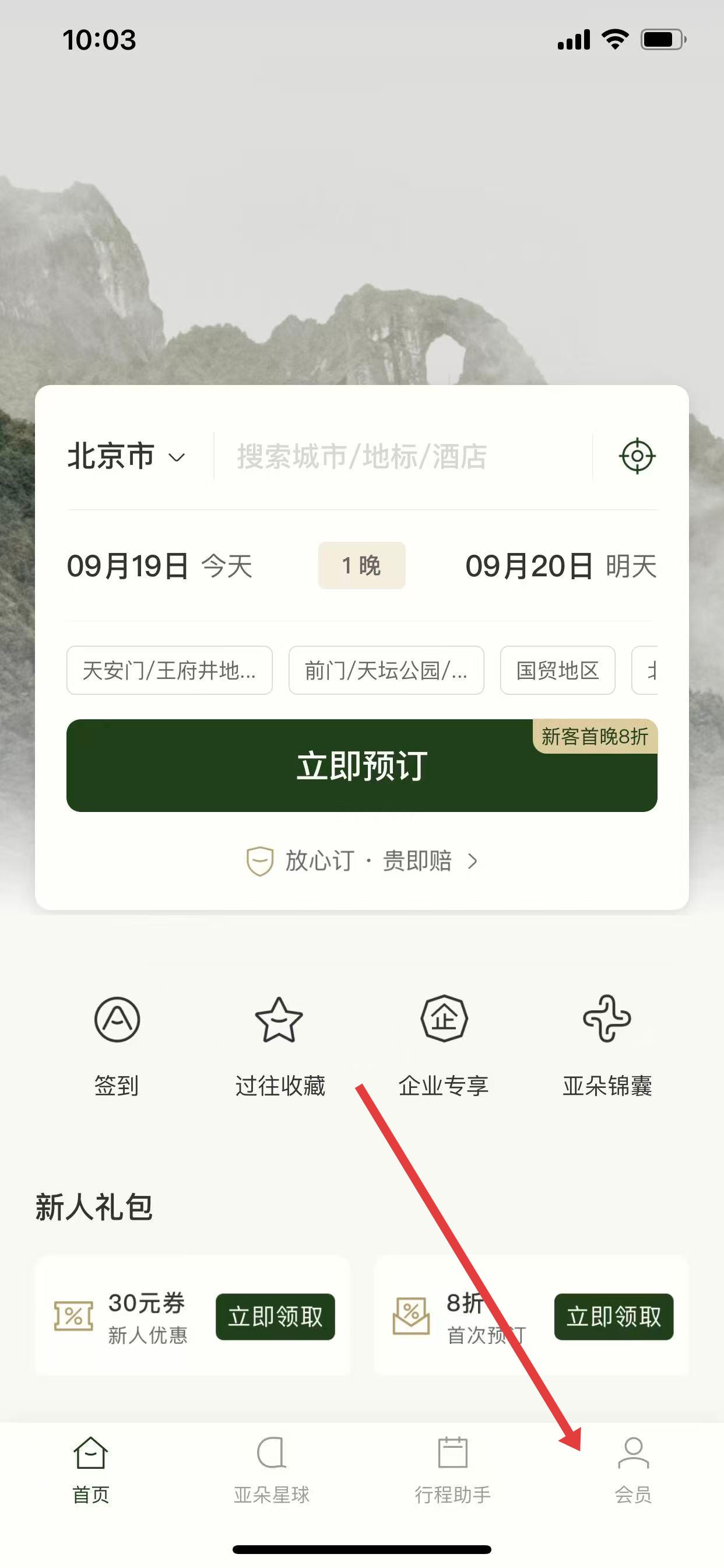 1、打開(kāi)亞朵APP,點(diǎn)擊底部導(dǎo)航欄中的會(huì)員。