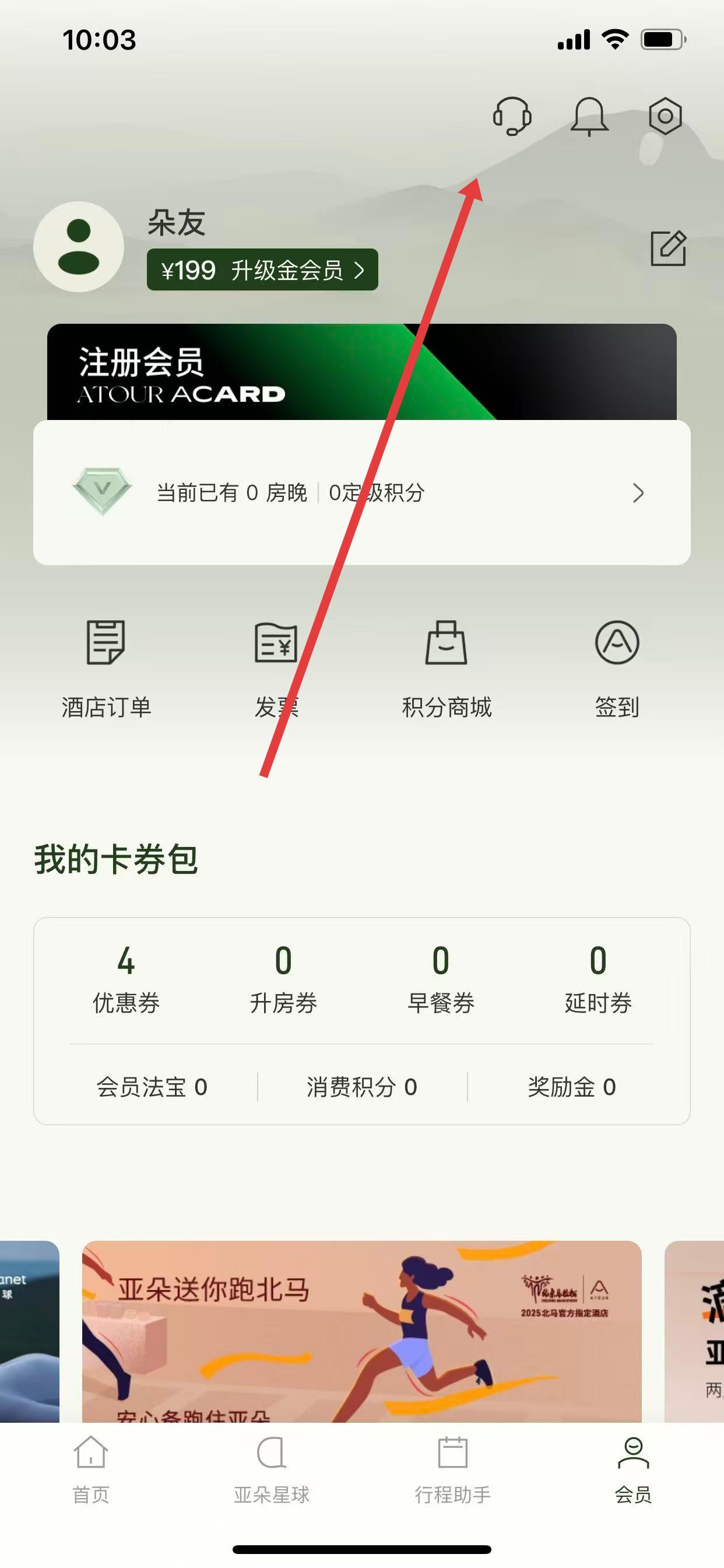 2、在會(huì)員頁(yè)面,點(diǎn)擊右上角的客服圖標(biāo)。