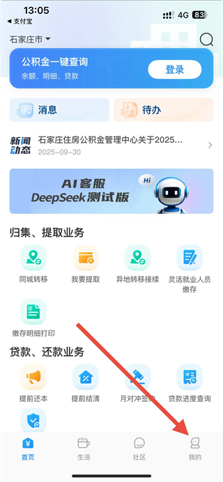 1、進入手機公積金app后,點擊底部我的選項,進入我的頁面。