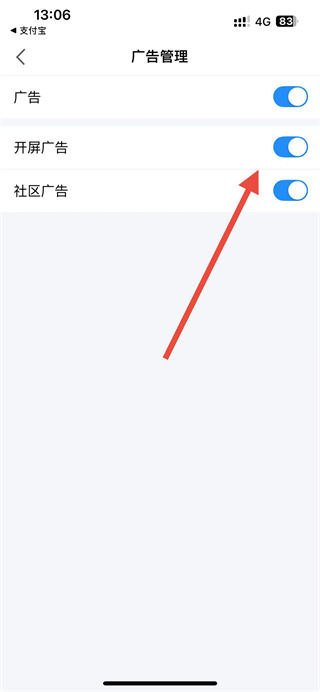 4、在廣告管理頁面,找到對應(yīng)的開關(guān),點擊開關(guān)即可關(guān)閉對應(yīng)的廣告展示。