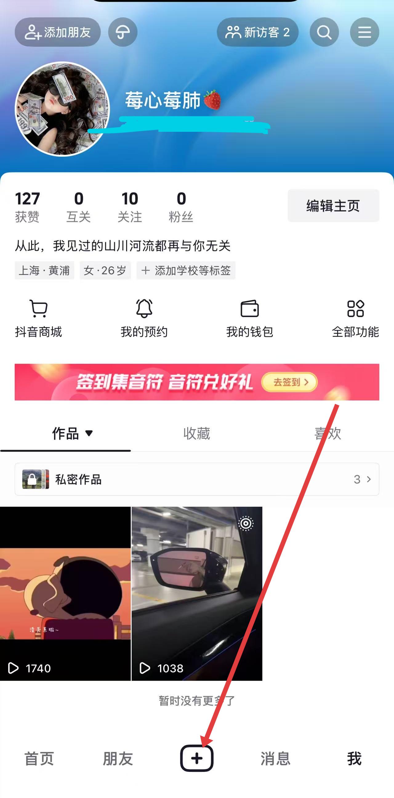 1、在抖音個人頁,點擊底部加號,進入拍攝/上傳界面,創(chuàng)作視頻內(nèi)容,添加音樂、特效等創(chuàng)意元素。