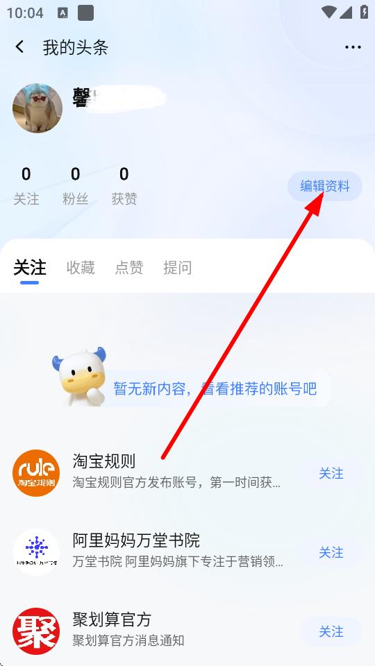 3、在我的頭條頁(yè)面中,點(diǎn)擊編輯資料按鈕。