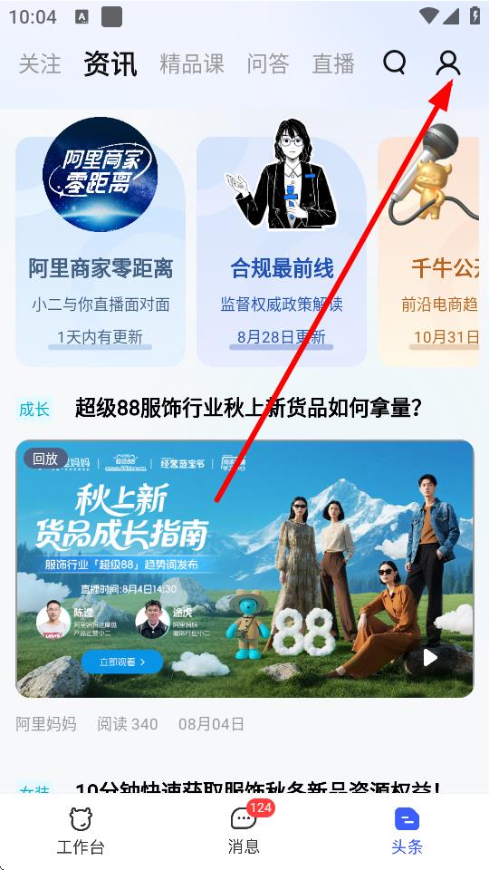 1、打開(kāi)千牛APP,點(diǎn)擊底部頭條選項(xiàng)進(jìn)入頭條界面。