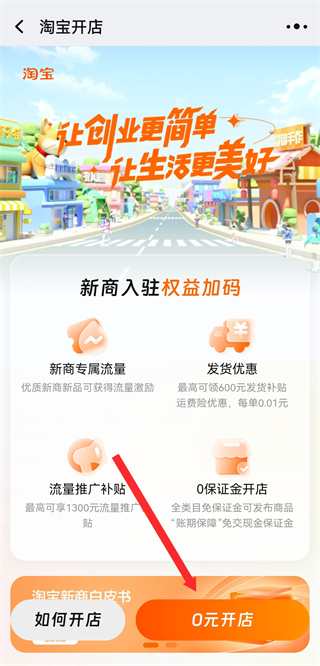 2、在淘寶開(kāi)店的頁(yè)面,點(diǎn)擊0元開(kāi)店,進(jìn)入店鋪類(lèi)型選擇界面。