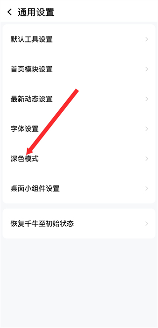 3、在通用設(shè)置界面,點(diǎn)擊深色模式,進(jìn)入深色模式設(shè)置頁(yè)面。