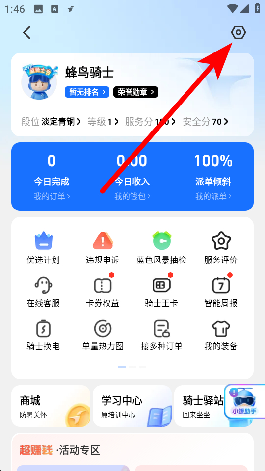 2、在個(gè)人中心的頁(yè)面,點(diǎn)擊右上角設(shè)置圖標(biāo),進(jìn)入設(shè)置的界面。