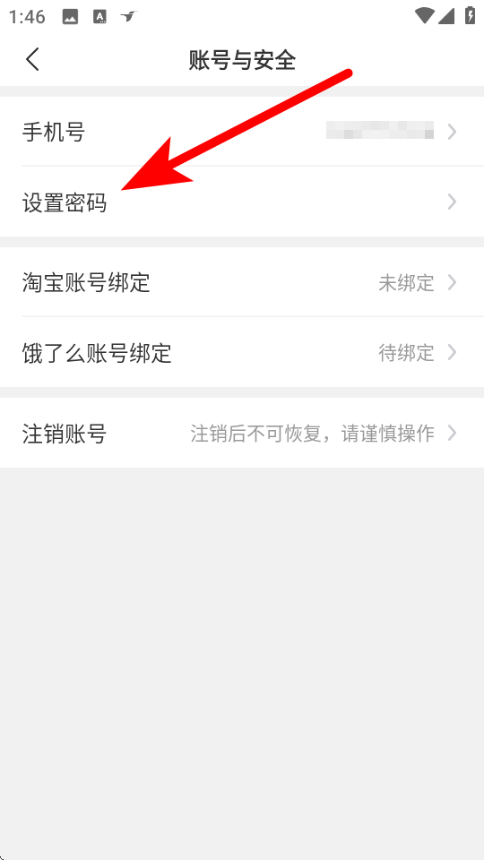 4、在賬號(hào)與安全頁(yè)面,點(diǎn)擊設(shè)置密碼,按提示完成密碼設(shè)置操作。