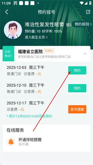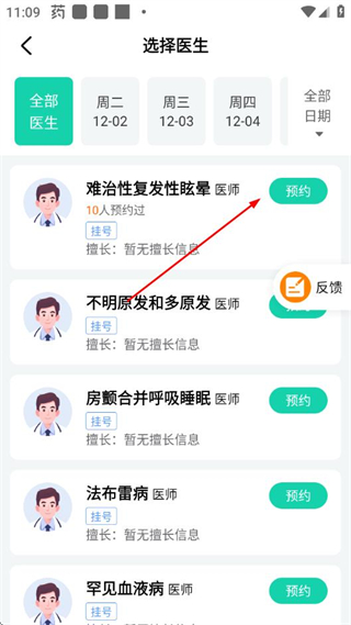 4、在醫(yī)生列表中選擇目標醫(yī)生,點擊右側預約,進入時段選擇頁面。