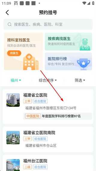 2、在預約掛號頁選擇目標醫(yī)院,進入該醫(yī)院的掛號頁面。