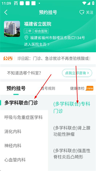 3、在醫(yī)院掛號頁選擇科室,進入選擇醫(yī)生頁面。
