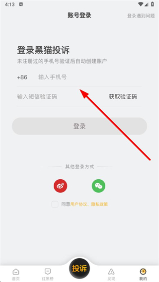 3、在頁面輸入手機號,獲取驗證碼輸入,勾選協(xié)議后,點擊登錄按鈕,即可完成登錄操作。