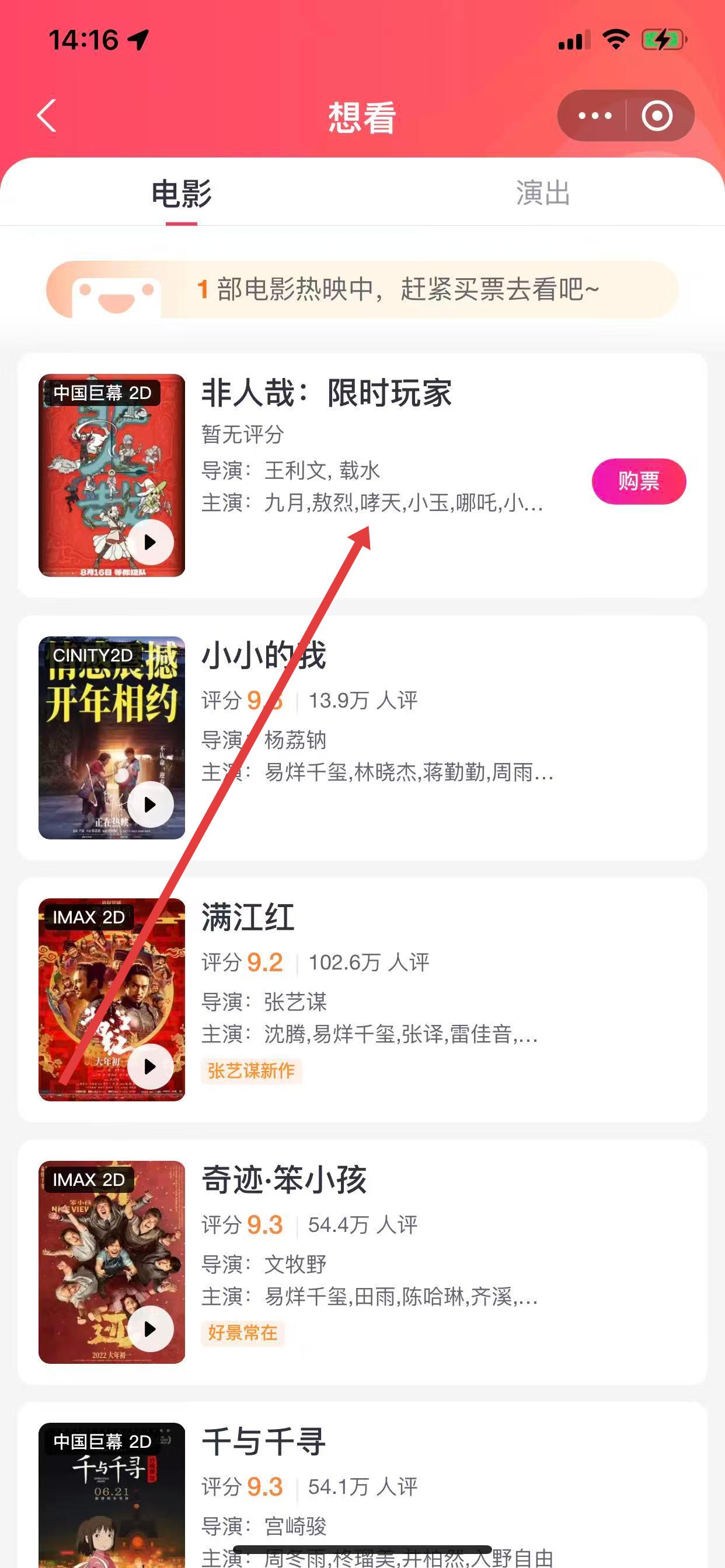 3、在想看頁面中,可查看標(biāo)記為想看的電影列表,點擊對應(yīng)電影可進入詳情頁。