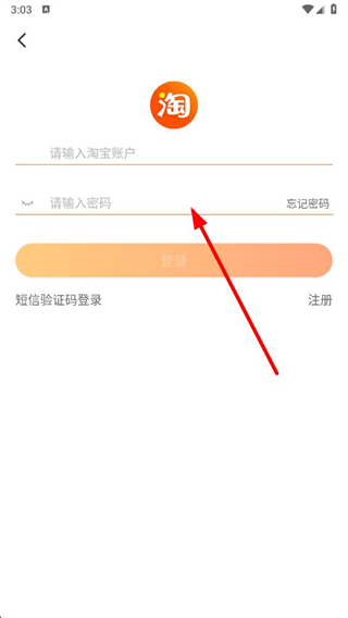 4、在賬戶密碼登錄頁面,輸入淘寶賬戶和密碼,點擊登錄按鈕完成登錄操作。