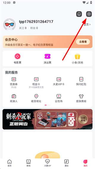 1、打開淘票票app,點擊右下角我的選項,進入個人頁面。