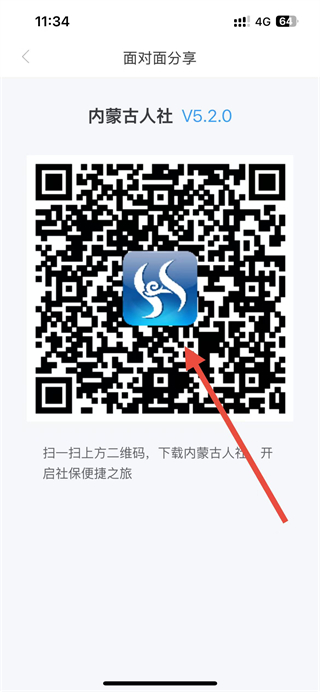 3、在面對面分享界面,可看到生成的二維碼,他人掃碼即可完成內(nèi)蒙古人社的分享操作。