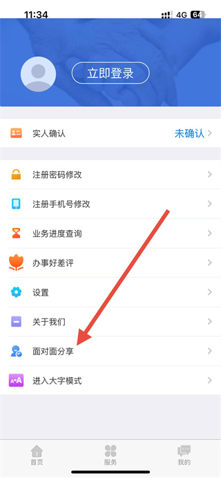 2、在頁面中,找到面對面分享選項并點擊,進入對應(yīng)的分享功能界面。