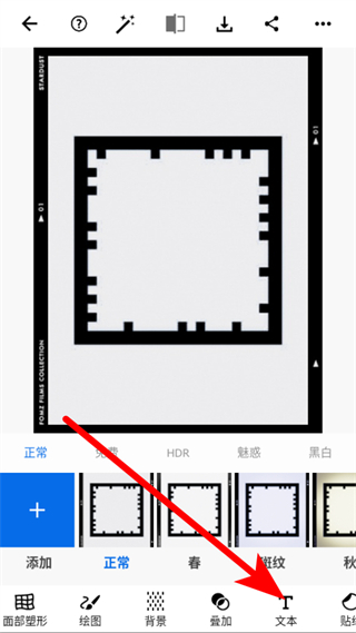 3、進(jìn)入照片編輯界面后點(diǎn)擊底部文本工具,進(jìn)入文字輸入界面。