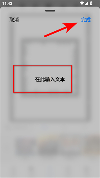 4、在“在此輸入文本”區(qū)域輸入文字,點(diǎn)擊右上角完成,完成文字添加操作。